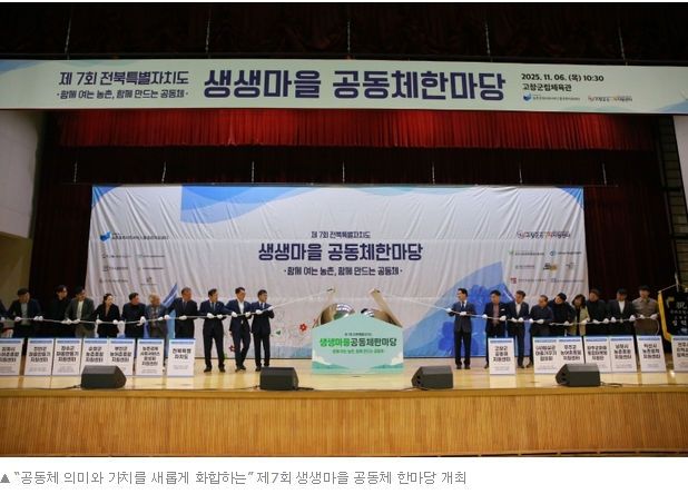 출처: 전북자치도, “공동체 의미와 가치를 새롭게 화합하는” 제7회 생생마을 공동체 한마당 개최 - 뉴스줌 - https://www.newszoom.kr/1695271