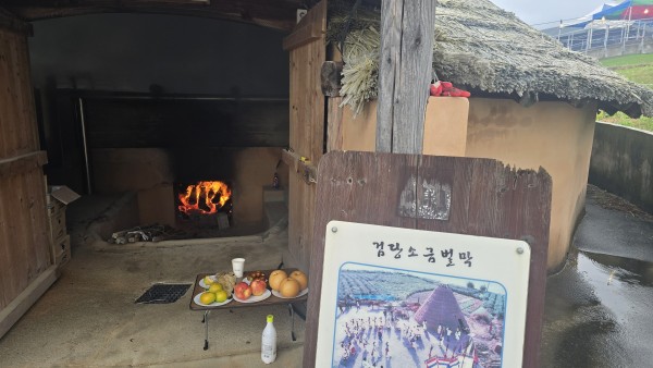 아래 벌막(소금굽는곳)에서는 예쁜 소금꽃이 피어나고 있었고, 위에서는 사등마을 주민분들과 소금꽃축제를 구경오신 분들도 웃음꽃이 피어났답니다.